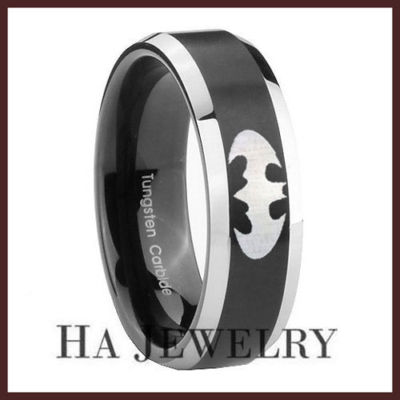 5MM BLACK TUNGSTEN CARBIDE BAT MAN'S RINGS SIZE 5-9