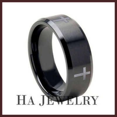 5MM BLACK TUNGSTEN SATIN CARBIDE CROSS RING SZ 5-9