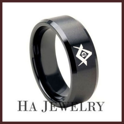 5MM BLACK TUNGSTEN SATIN FREEMANSON MASONIC RING SZ 5-9