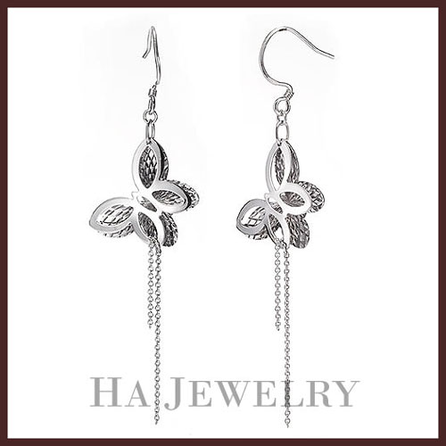 SILVER 925 DUO BUTTERFLY DROP CHAIN DANGLE EARRINGS NEW
