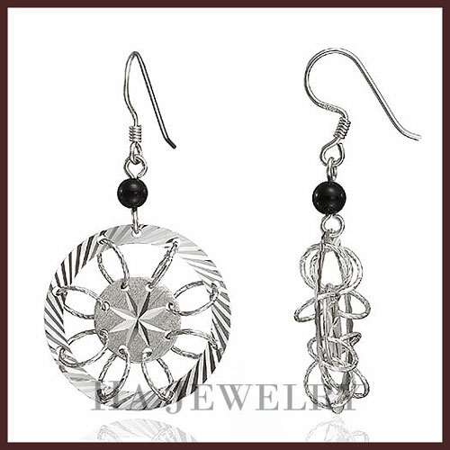 STERLING SILVER 925 CIRCLE FASHION DANGLE DROP EARRINGS
