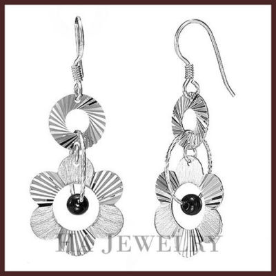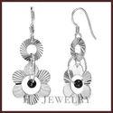 STERLING SILVER 925 FLOWER DANGLE BLACK BEADS EARRINGS