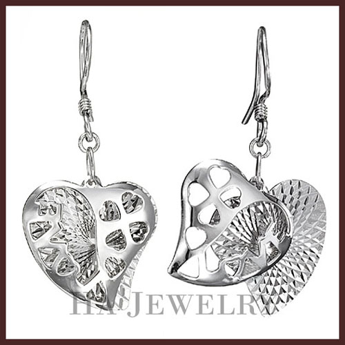 STERLING SILVER "LOVE" HEART FASHION DANGLE EARRINGS