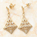 Genuine Diamond Gold Vermeil Filigree Dangle Earrings
