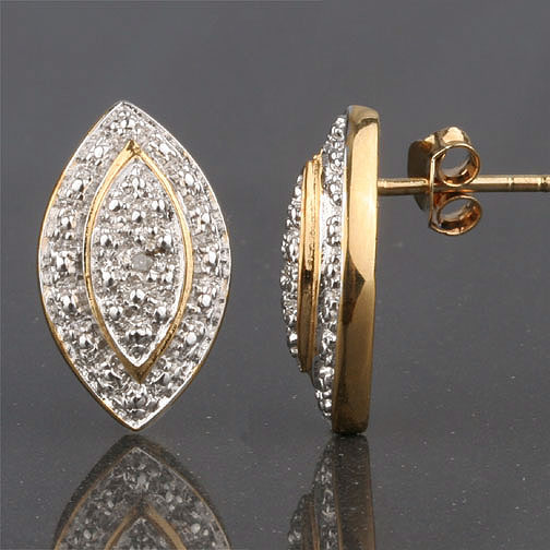 Genuine Diamond Two Tone Gold Vermeil Stud Earrings