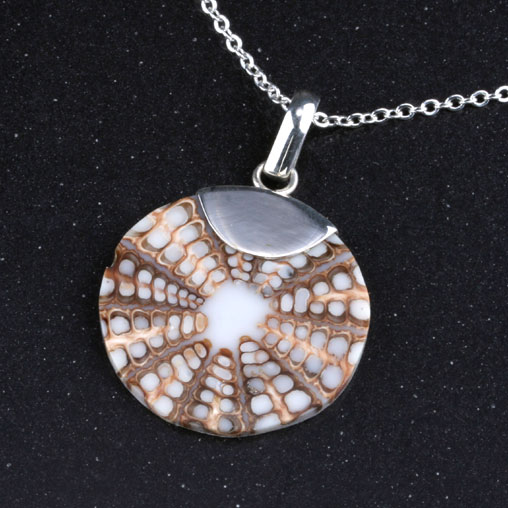 Round Tiger Shell 925 Sterling Silver Pendant Necklace