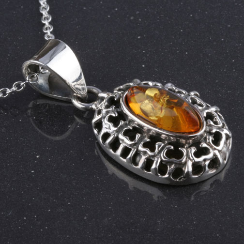 Amber Hollow Silver 925 Thai-Art Pendant Necklace 18"