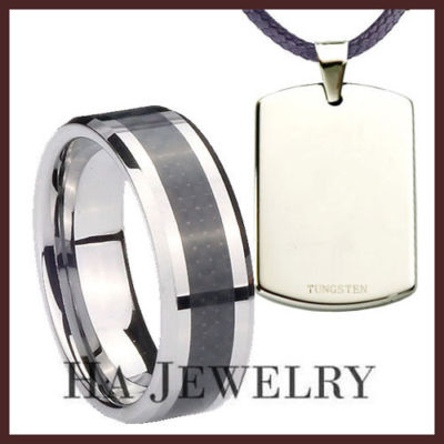 Tungsten Black Carbond Fiber Ring & Dog Tap Pendant