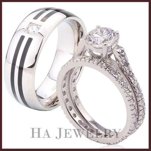 Men Matching Set 2 Rings.3.2CT Silver 925 Simulated Diamond Stunning Stackable Wedding Set Ring For man's wedding band is 8mm width, 2.5mm round CZ approx. 0.1 carat double line Black Enamel Comfort fit Titanium Ring.
