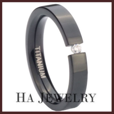 4MM BLACK FLAT TOP TITANIUM TENSION RD CZ RING SIZE 9