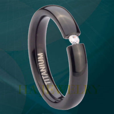 4MM BLACK TITANIUM DOME ROUND CZ TENSION RING SIZE 6