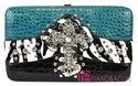 NEW WESTERN RHINESTONE CROSS HARDCASE FLAT WALLET CLUTCH ZEBRA ACCENT BLUE