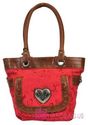 Heart Love Design DIOPHY Jacquard Front Pocket Shoulder Tote Purse Handbag Red