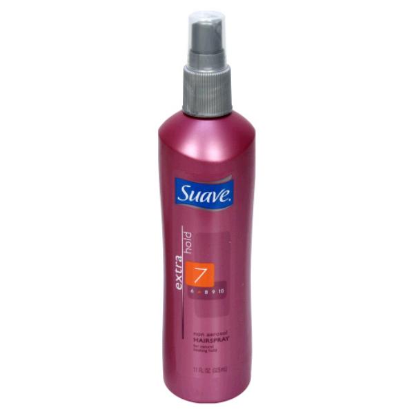 Suave Extra Hold 7 Non Aerosol Hairspray. These are repack shelf pulls. Provides control and manageability for less than more expensive brands. Extra hold formula provides natural-looking hold and all-over control. Never too stiff or sticky. 11 oz pump spray bottle. Case Pack 12