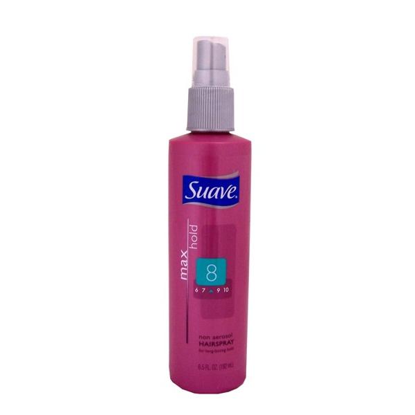 Suave Max Hold 8 Non Aerosol Hairspray. These are repack shelf pulls. Provides long lasting hold and control for less than more expensive brands. Never too stiff or sticky. 6.5 oz pump spray bottle. Case Pack 12
