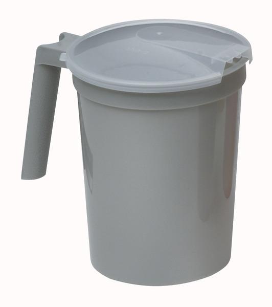 Plastic pitcher pours water while holding back ice and features pop-off tabs that let the user open it with a quick flick of the thumb. Clear lid. 1000 cc.Standard Pitcher Features an Easy-Open LidPitcher Accessories - White Foam Outer Jacket Case Pack 20