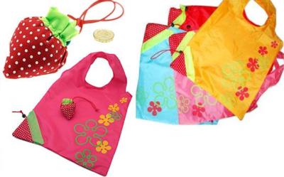 Sweet strawberry design, the bag can be folded into a strawberry shape.