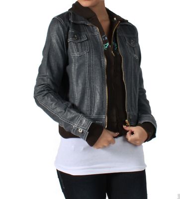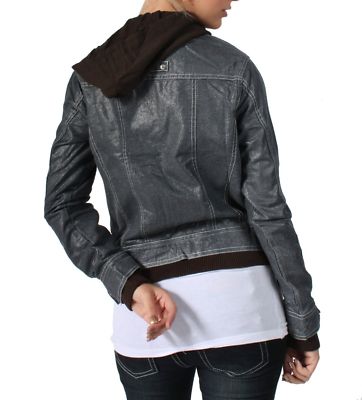 Sanjoy Fitted Denim Jacket with Embedded Hoodie in Dark Brown Medium Brand New!