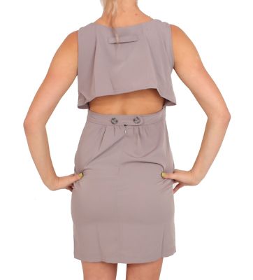 Though the front of this dress may seem modest, once you check out the back you'll see the revealing back cut. The v-neck is cut 10" deep from the neck down. The back of the skirt is held together by a hidden zipper and two buttons to give the sexy back a touch of sweetness. Perfect to wear with a cardigan at work, and to wear alone when you go out afterwards!