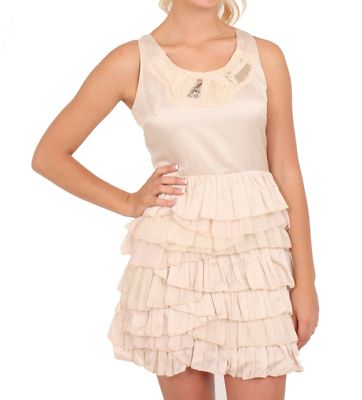 Esley Sleeveless Ruffled Scoop Neck Short Dress in Cream Medium Brand New!