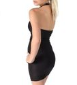 This dress with a heart-shaped neckline covered with a lace halter strap, hugs the wearer in all the right places. With a hidden zipper on the left side and in a stretchy fabric, this dress holds it together as a go-to little black dress. The lace strap takes this dress up to another level of hotness, perfect for a night out with your boyfriend or at the club to find one.