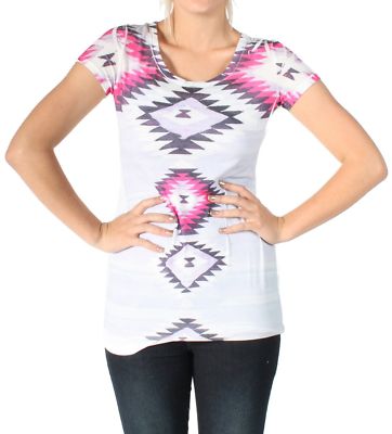 Romeo & Juliet Couture Cap Sleeve Scoop Neck Multi Print Blouse in White Small