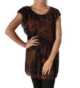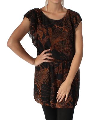 This black tunic with an orange stencil design of peacocks is a great solution if you're looking to dress up without being uncomfortable. This tunic features flouncy sleeves and an expandable waistline. From the moment you sit at your favorite restaurant till he walks you to your front door, look good and feel good in this classy tunic.