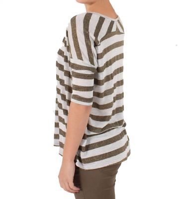 Tired of striped shirts in nautical colors? Then this shirt is for you! In alternating heather grey and pyrite gold, this top gives nautical stripes a run for their money. Loose fit in a thin, delicate fabric, this v-neck can be worn all year round.