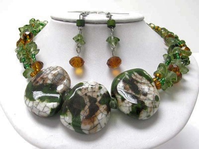 CHUNKY MULTI ROW BEADS NATURAL STONE NECKLACE