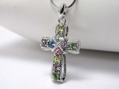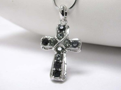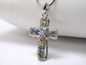 White Gold Plating Crystal Stud Cross Pendant Necklace