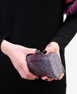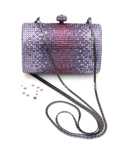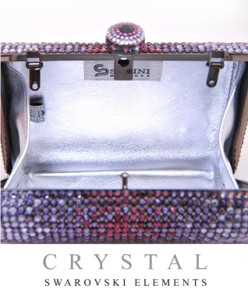 This exquisite evening bag is adorned with Swarovski grade crystals, making it ideal for any fancy occasion. It’s leather interior provides a durable yet soft feel while providing enough room for your accessories.