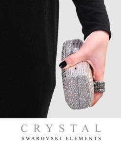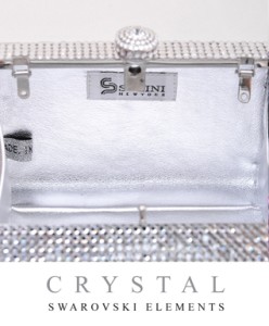 This exquisite evening bag is adorned with Swarovski grade crystals, making it ideal for any fancy occasion. It’s leather interior provides a durable yet soft feel while providing enough room for your accessories.