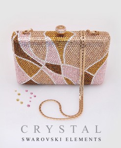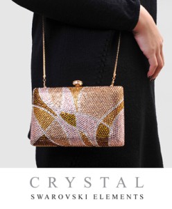 This exquisite evening bag is adorned with Swarovski grade crystals, making it ideal for any fancy occasion. It’s leather interior provides a durable yet soft feel while providing enough room for your accessories.