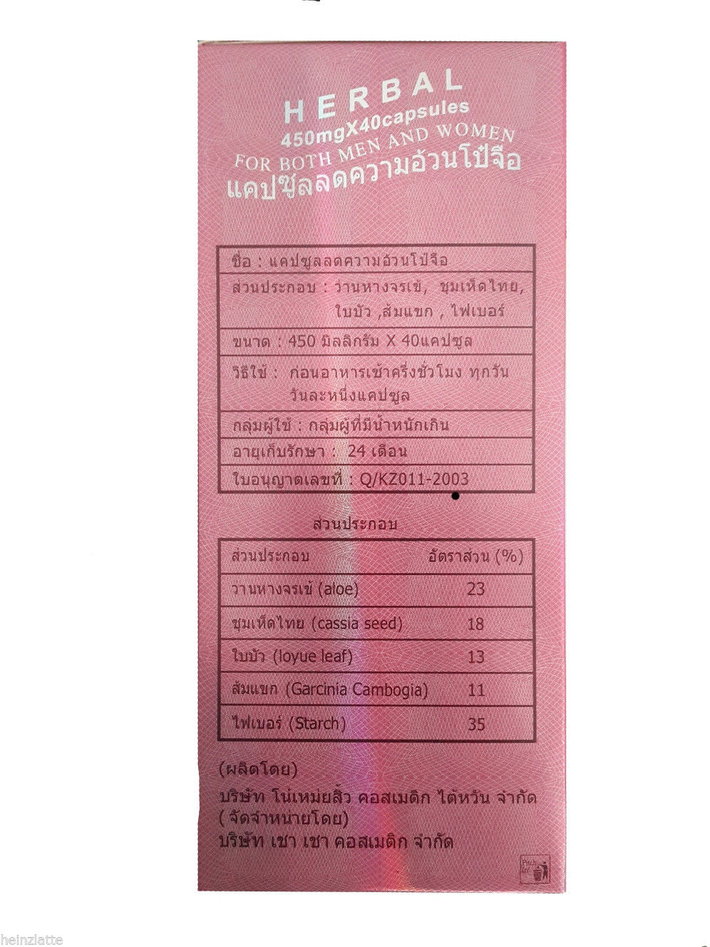 -Number 1 slimming product in Thailand Very popular now, -Fast Slimming 100% Herbal -High Quality Slimming Product from Taiwan -For both men and women. -Baschi quick slimming capsule is processed by advanced technology with pure natural herb. -Usage: -1 capsule per day taking it half hour before the breakfast.