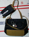 DENIM CUSTOM MADE PURSE WITH MINIATURE JEAN COIN PURSE & PASTEL FLOWER KEYCHAIN