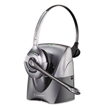 Allows contact center and phone-intensive office professionals to communicate hands-freeup to 300-ft. from workstation. DECT technology provides incredible sound quality and maximum voice security without interfering with computer routers, wireless keyboards and other electronics. Soft ear cushions provide for comfortable extended use. 10-hour talk time delivers all-day performance from a single charge. One-touch answer/end feature works in conjunction with Plantronics HL10 Handset Lifter (sold separately). Headset Type: Monaural; Headset Style: Over The Head; Earpiece Type: Ear Cushion; Earpiece Material: Leatherette.