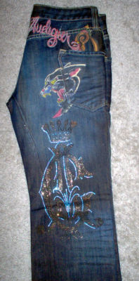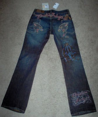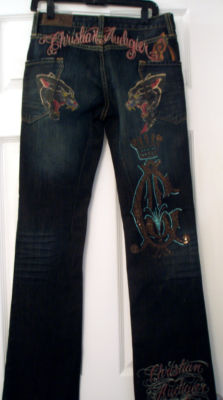 AUTHENTIC CHRISTIAN AUDIGIER - Black Panther Gem Logo JEANS What all the Hollywood stars adore..very slimming. These look so good on - photos do them no justice! All my items are satisfaction guaranteed! I accept returns within 3 days so bid with confidence.