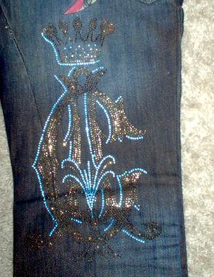LOW RISE, ZIPPER FLY, 5 POCKET STYLE BOOT CUT JEANS Adorned WITH CRYSTAL Crown DETAILING and logo stitched on rear...meticulously detailed. You are bidding on a new with tags CHRISTIAN AUDIGIER DENIM JEANS Black Panther Gem Logo for today's fun in the Sun women.