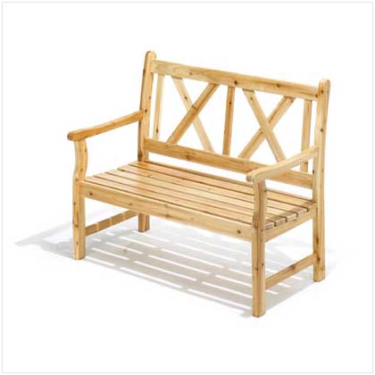 Pine Wood Outdoor Bench Rugged polished pine bench is designed in a simple yet elegant style that makes outdoor living feel luxurious. Oil and lacquer finish. May require additional freight charge. 47" x 25 1/4" x 37 1/4" high.