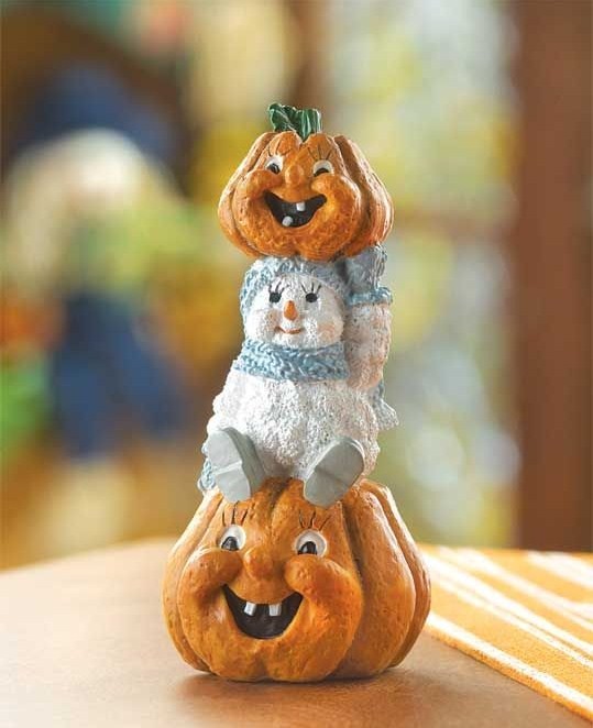 - A happy trio of holiday figures has a merry old time, playfully stacking in totem-pole fashion.