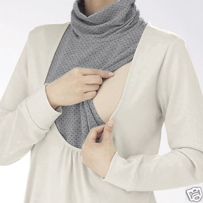 NEW CREAM with BLACK & GREY STRIPES BREASTFEEDING / NURSING MATERNITY TOP