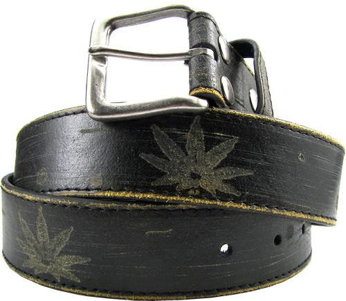 Black Distressed Leather Leaf Belt