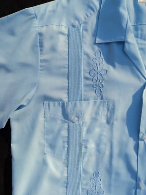 Men's Vintage Guayabera Shirt Blue 44