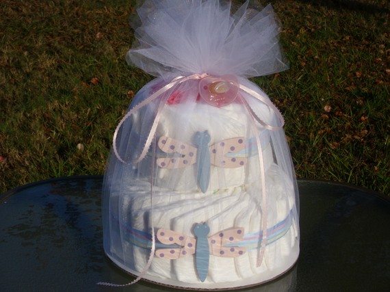 This Cake is perfect for that Special Bundle of Joy. This is the perfect Center Piece for a baby shower, or a good luck gift for the mom-to-be. These 2 Tier cakes are one of kind, so each may differ slightly in ribbon choice. All will be cute as a button.