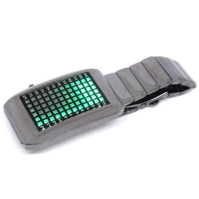 Specifications * Main Function: Japanese-inspired green LED digital watch * Screen: 72 green LED lights for time and date display * Bracelet: - Material: Dark Chaoite colored metal strap - Length: ~ 160 mm - # of Segments: 18 - Segment length: ~ 7 mm * Clasp: Two button safety design * Buttons (right-side): - Top (hour and date display + select) - Bottom (change mode) * Settings: Time, Date, Luminosity * Power: CR2032 (x2) pre-installed * Manufacturer Ref: MPDXWX4N5TIL