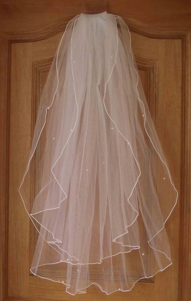 2 T Beads White or Ivory Bridal Wedding Veil With Comb