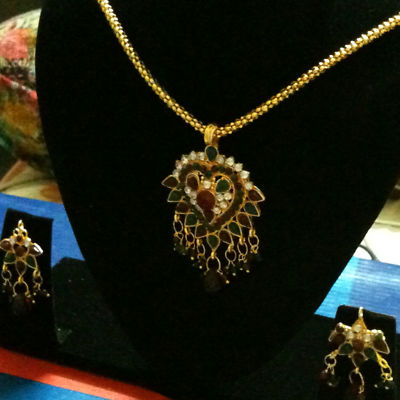 This is a brand new gorgeous Necklace Set with Gold Polish. A very stylish and beautiful One gram Gold Necklace Set. This can be worn with formal and informal both dresses and goes well with any skin tone. This stunning set contains following: