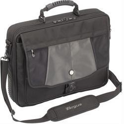 The Targus Platinum 17 Standard Deluxe Laptop Case offers unique style in a highly functional case. The padded laptop compartment keeps your notebook safe during travel, while the durable nylon materials with the signature rubber tread around the outside of the case provides a stylish design element and shock absorption. This case includes a number of storage compartments and a front flap pocket for quick access to items you need most: airline ticket, passport, PDA, pens, keys and business cards. The main compartment has been modified to include a large mesh pocket and 2 padded pockets for accessories as well as scratch-resistant sleeves to hold 5 CD/DVDs. For additional travel convenience, the included luggage strap makes it easy to attach the Blacktop case to rolling luggage.