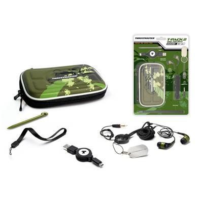 "Street" style carry bag pack for DS Lite. Hard-shell case crafted of EVA for optimum protection of your console, including: 1 compartment for DS Lite console with fastener strap (to play without removing the console), 1 internal compartment for storing your games, earphones, USB charger and other accessories; Wrist-strap. Ultra-light stereo necklace earphones. 10mm driver - 16 Ohms - standard minijack connector; Retractable DS Lite USB charger: Charge from PC or Mac, Charge from PS2/PS3/Wii/Xbox360 console Khaki stylus, MP3 player attachment system. Removable clip on earphone cable. "Thrustmaster Elite Member" tag.