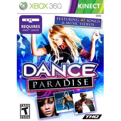 Dance Paradise (Kinect Required) X360... Party with your friends and dance together with no controllers! Dance Paradise comes with the most music of any Kinect dance game -- 40 original hit songs. And Dance Paradise is the only Kinect dance game that includes all of the original artist videos. Dance Paradise for Kinect frees your body from controllers so you can really get the party going with 40 original songs and music videos from the hottest artists like Lady Gaga, Rihanna, Taio Cruz and more. Dance Paradise is the only Kinect game to give you both the artist videos and true head-to-head multiplayer action to make a real party game!